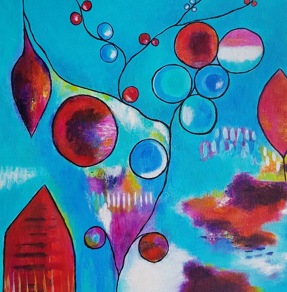 Akryl på lærred,lag på lag teknik